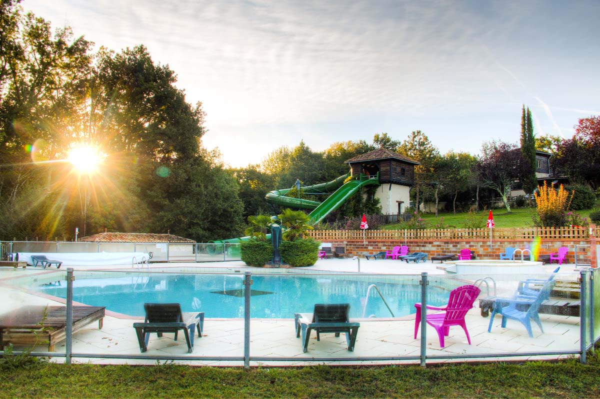 Next come the facilities which are, for a campsite with not more than 125 pitches, certainly plentiful. Sports courts, sauna, and hammam. An indoor pool and large outdoor pools with slides. Just to name a few. Only a couple of years ago, François and Jacqueline have bought Domaine Laborde. Knowing that François had earned his stripes at naturist village
